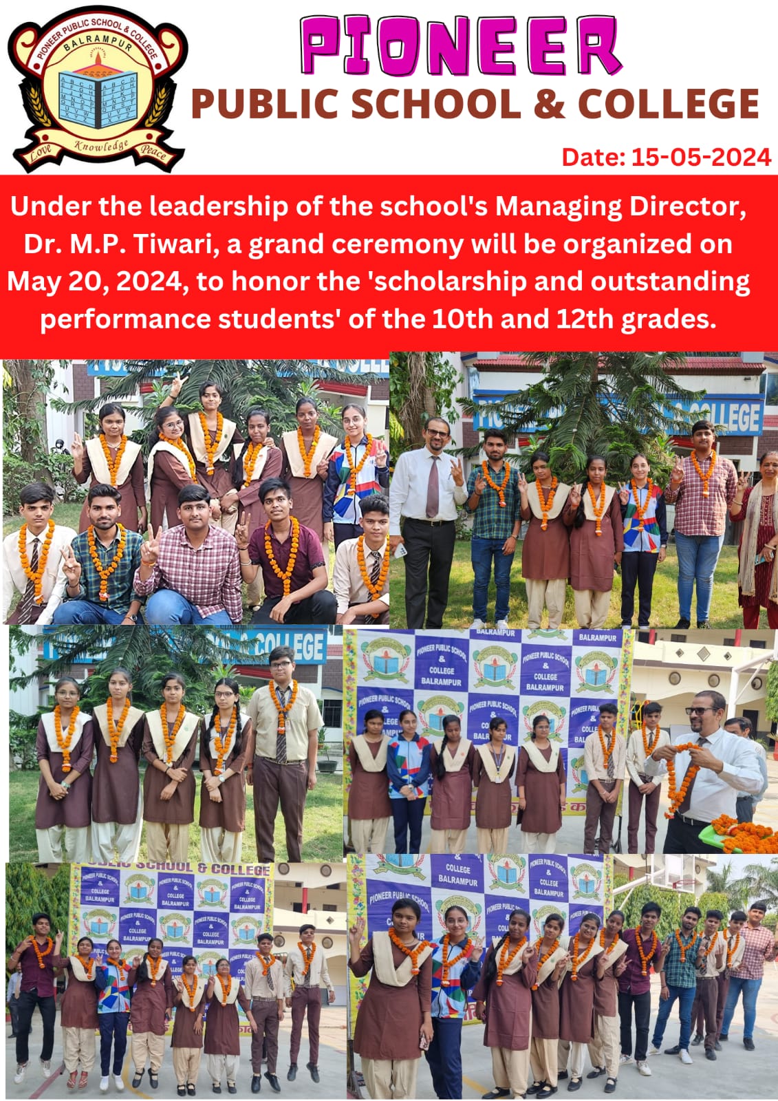 जनपद बलरामपुर में 15 मई को शहर के अग्रेंजी माध्यम विद्यालय पॉयनियर पब्लिक स्कूल एण्ड कॉलेज द्वारा बताया गया कि 10वीं व 12वीं को ‘‘छात्रवृत्ति एवं उत्कृष्ट प्रदर्शन करने वाले मेधावी छात्र-छात्राओं‘‘ का भव्य सम्मान समारोह का आयोजन दिनांक 20 मई, 2024 को किया जायेगा।